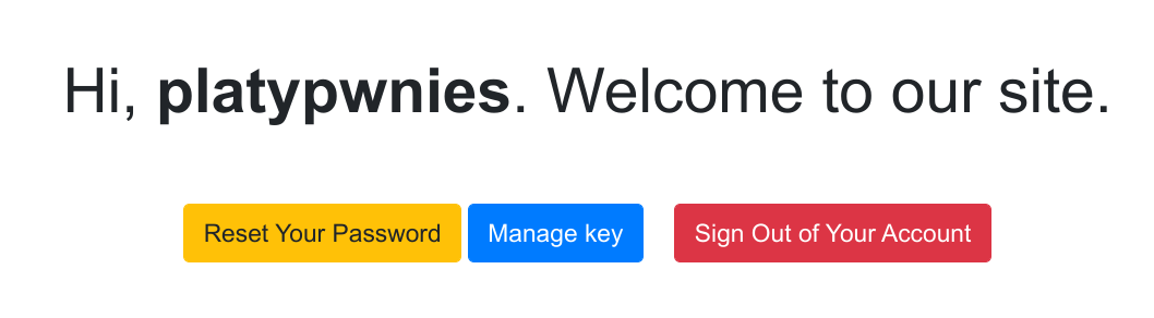 None of the links except “Login” and “Register” work. We register and log in and see a welcome page: